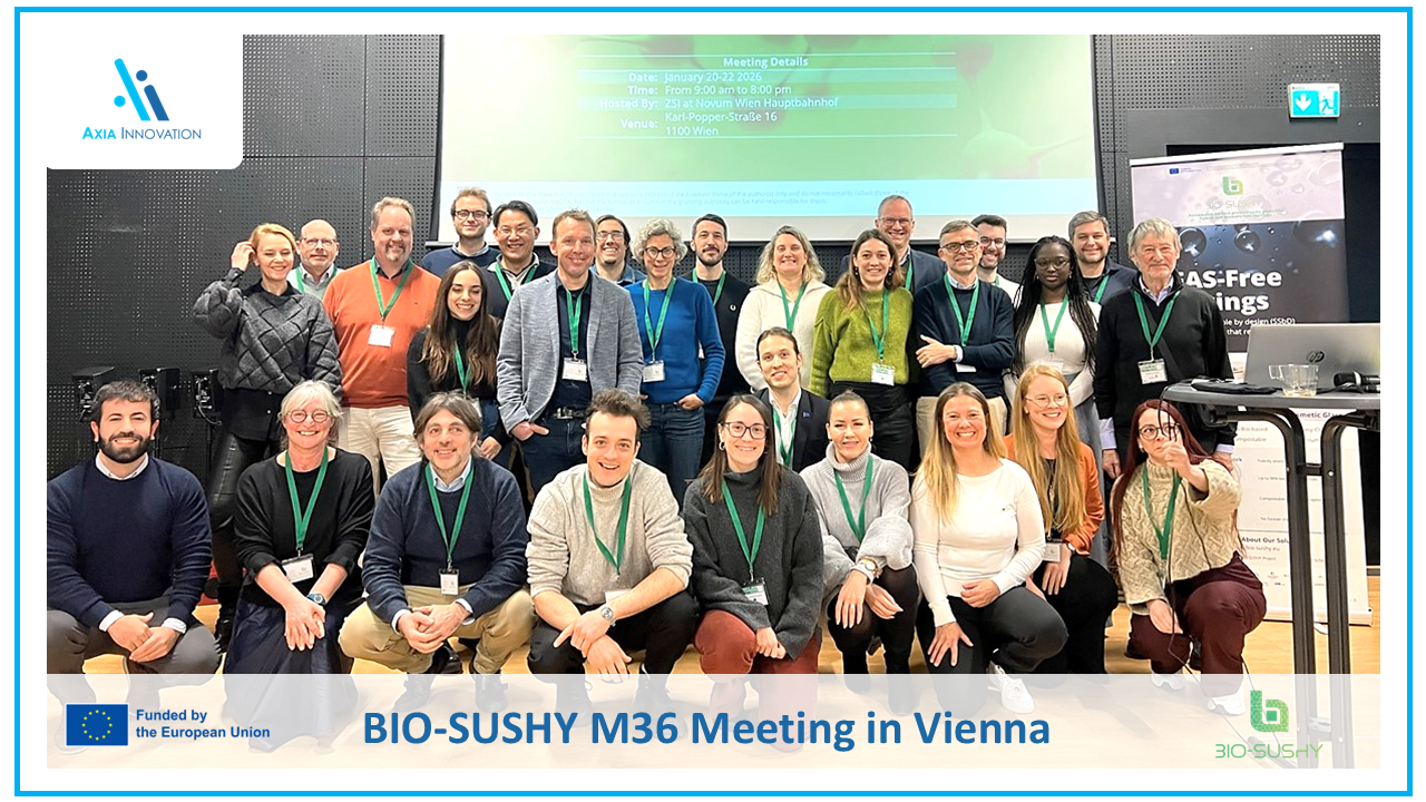 As the BIO-SUSHY project enters its final year, AXIA Innovation GmbH took center stage at the recent three-day consortium meeting in Vienna (January 20-22, 2026). Hosted by the ZSI Centre for Social Innovation, this Month 36 gathering reviewed progress and strategized the path forward. AXIA, leading the Work Package (WP) on “Measures to Maximize Impact,”